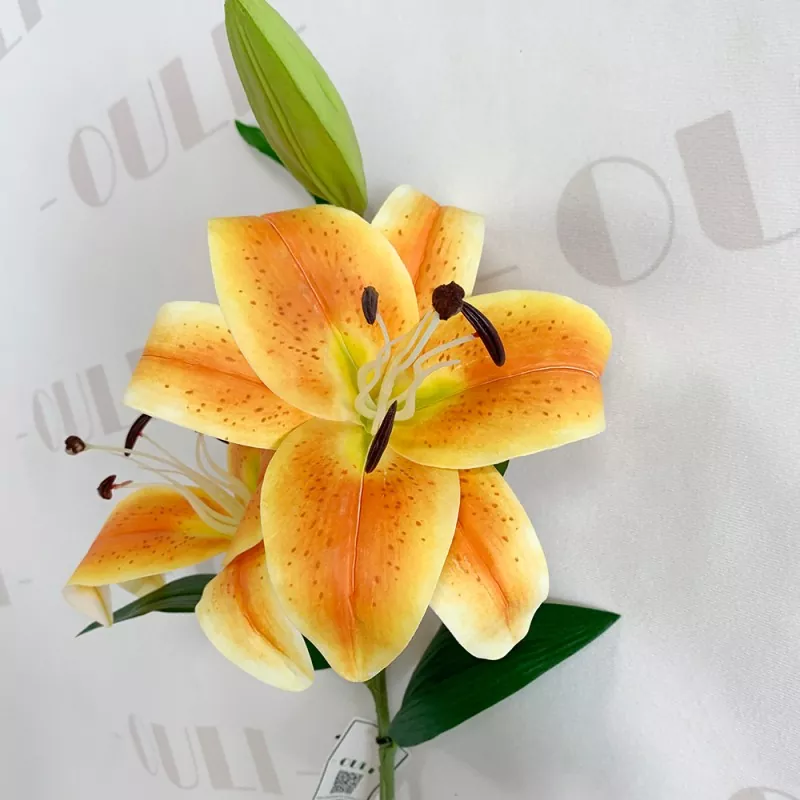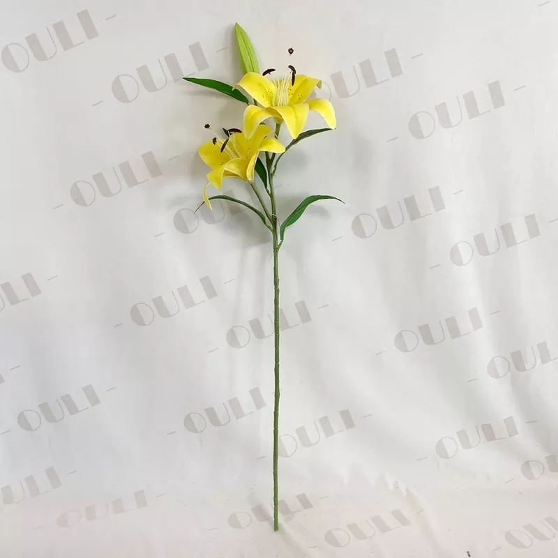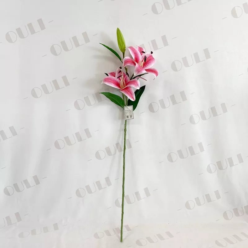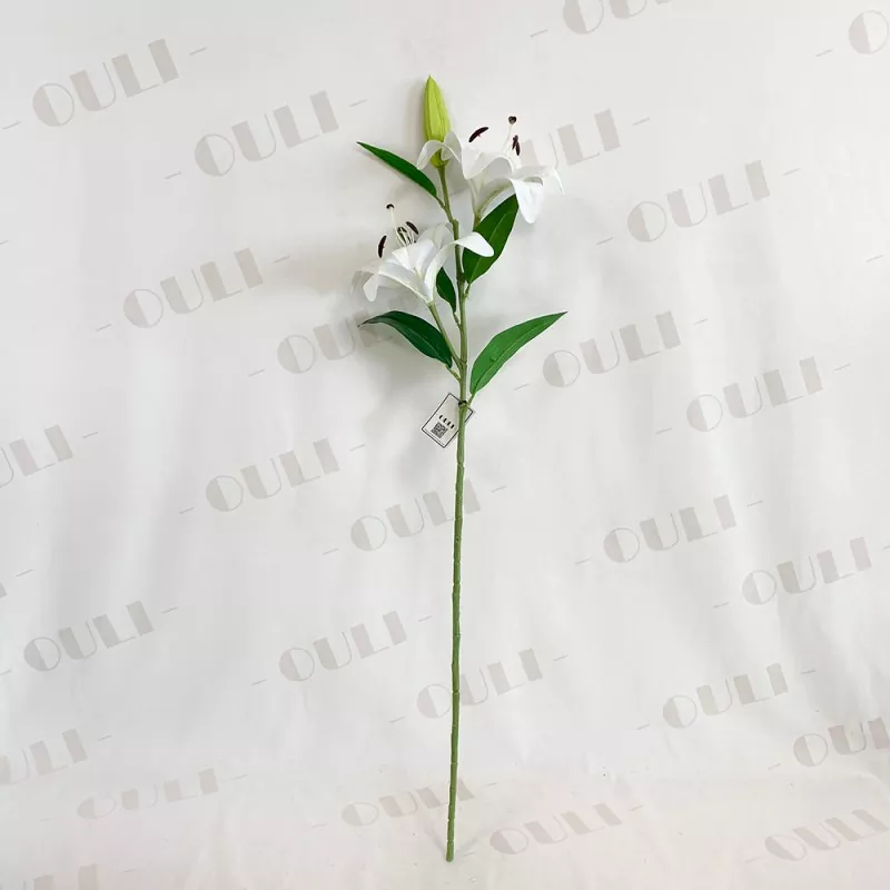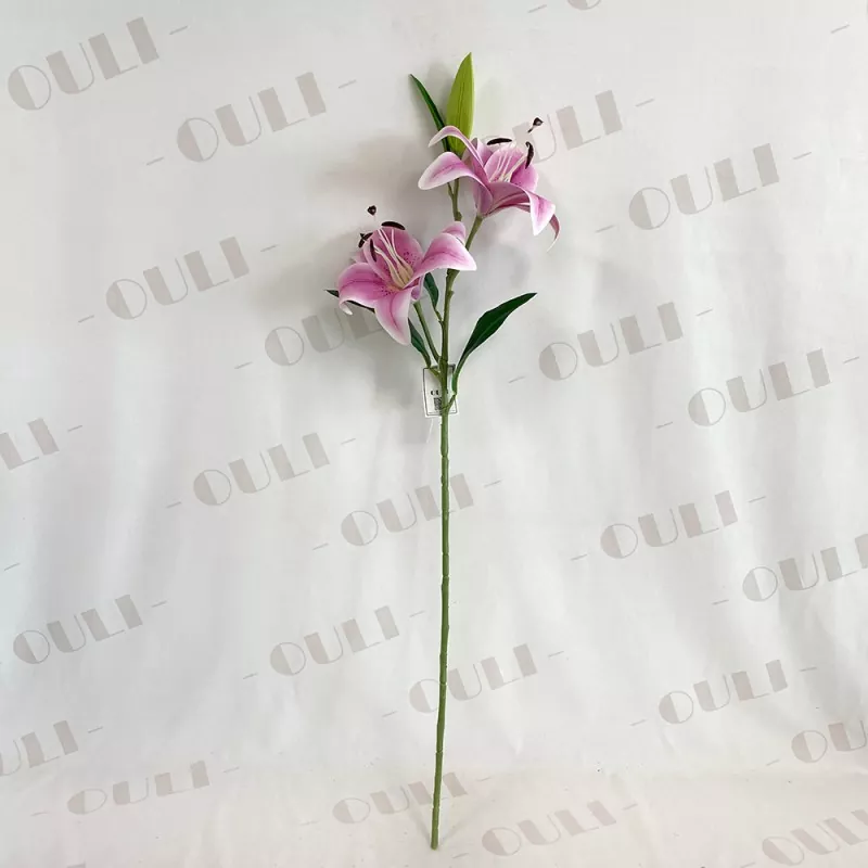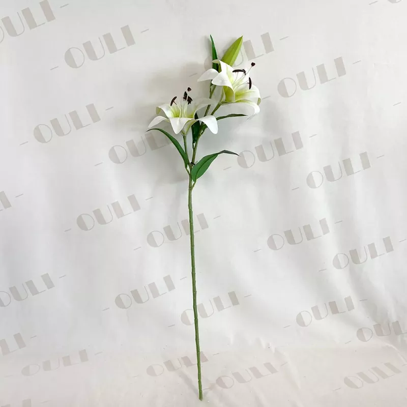 Som et merke som fokuserer på eksport av kunstige blomster, er Ouli® forpliktet til å gi globale kunder dekorativ blomsterkunst som kombinerer skjønnhet og kvalitet. Denne PU-falske liljen bruker en kombinasjon av myk PU og silkeklut med høyt simulering, med rette grener og fulle og naturlige blomster. Lengden på en enkelt gren er 90 cm, som inneholder 2 fullblomstrede blomster og 1 knopp, som er et ideelt element for moderne boligdekorasjon og bryllupsbakgrunn. Denne PU-falske liljen har bestått internasjonale sertifiseringer som CE/UKCA/ROHS og er egnet for langsiktig innendørs dekorasjon.