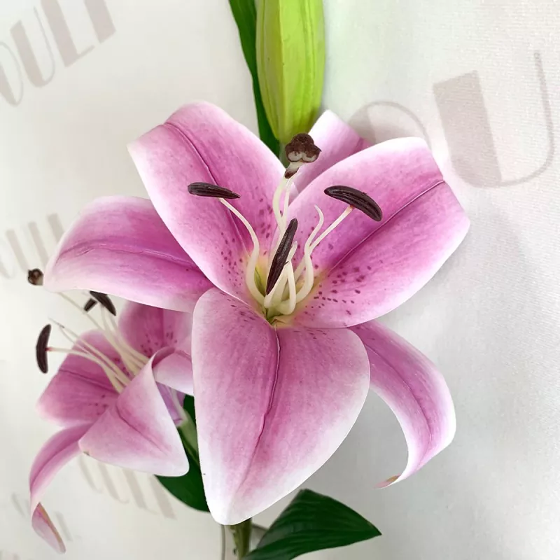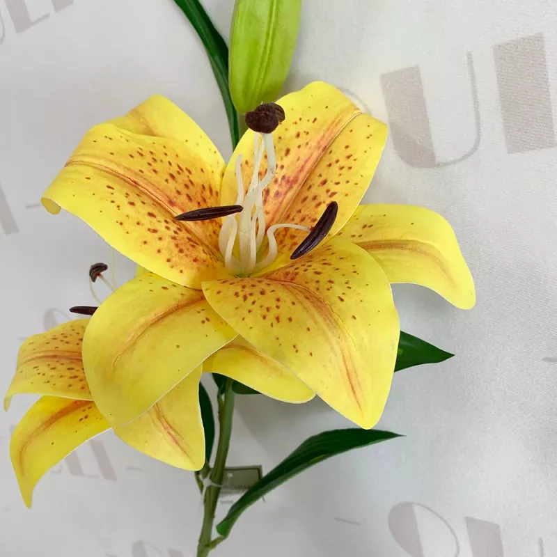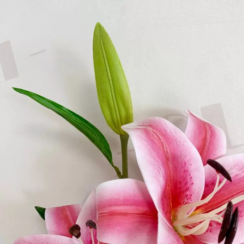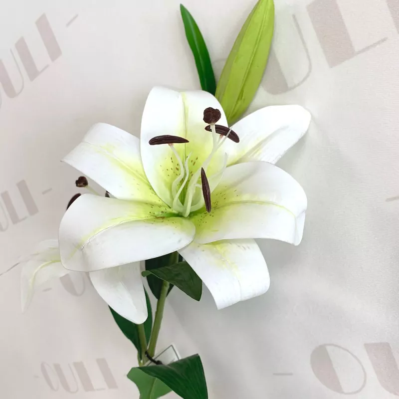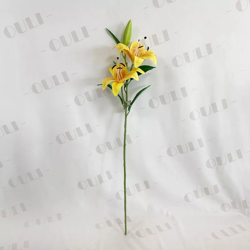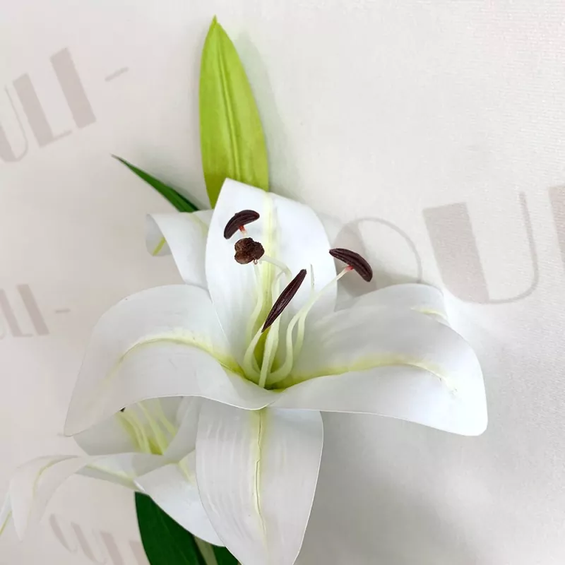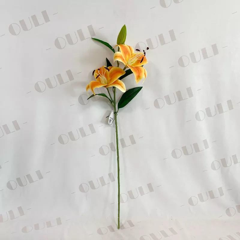 Som et merke som fokuserer på eksport av kunstige blomster, er Ouli® forpliktet til å gi globale kunder dekorativ blomsterkunst som kombinerer skjønnhet og kvalitet. Denne PU-falske liljen bruker en kombinasjon av myk PU og silkeklut med høyt simulering, med rette grener og fulle og naturlige blomster. Lengden på en enkelt gren er 90 cm, som inneholder 2 fullblomstrede blomster og 1 knopp, som er et ideelt element for moderne boligdekorasjon og bryllupsbakgrunn. Denne PU-falske liljen har bestått internasjonale sertifiseringer som CE/UKCA/ROHS og er egnet for langsiktig innendørs dekorasjon.